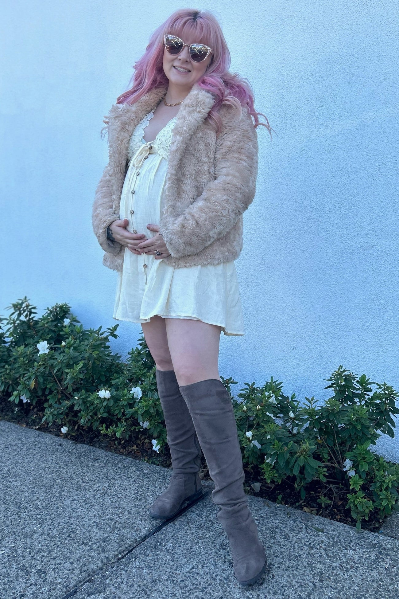 Embrace effortless elegance in our Crochet Lace Button Front Maternity Dress. This dreamy piece features delicate crochet lace detailing and charming front buttons for a touch of romance. The flattering empire waist and soft, lightweight fabric provide comfort and style throughout your pregnancy and beyond. Perfect for baby showers, brunches, or everyday moments, this dress drapes beautifully over your bump while allowing easy movement. Pair with sandals or wedges for an instantly chic look. Stay beautiful and comfortable during every stage of motherhood with this timeless maternity essential!