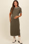 Blue Floral Chiffon Ruffle Accent Maternity Maxi Dress