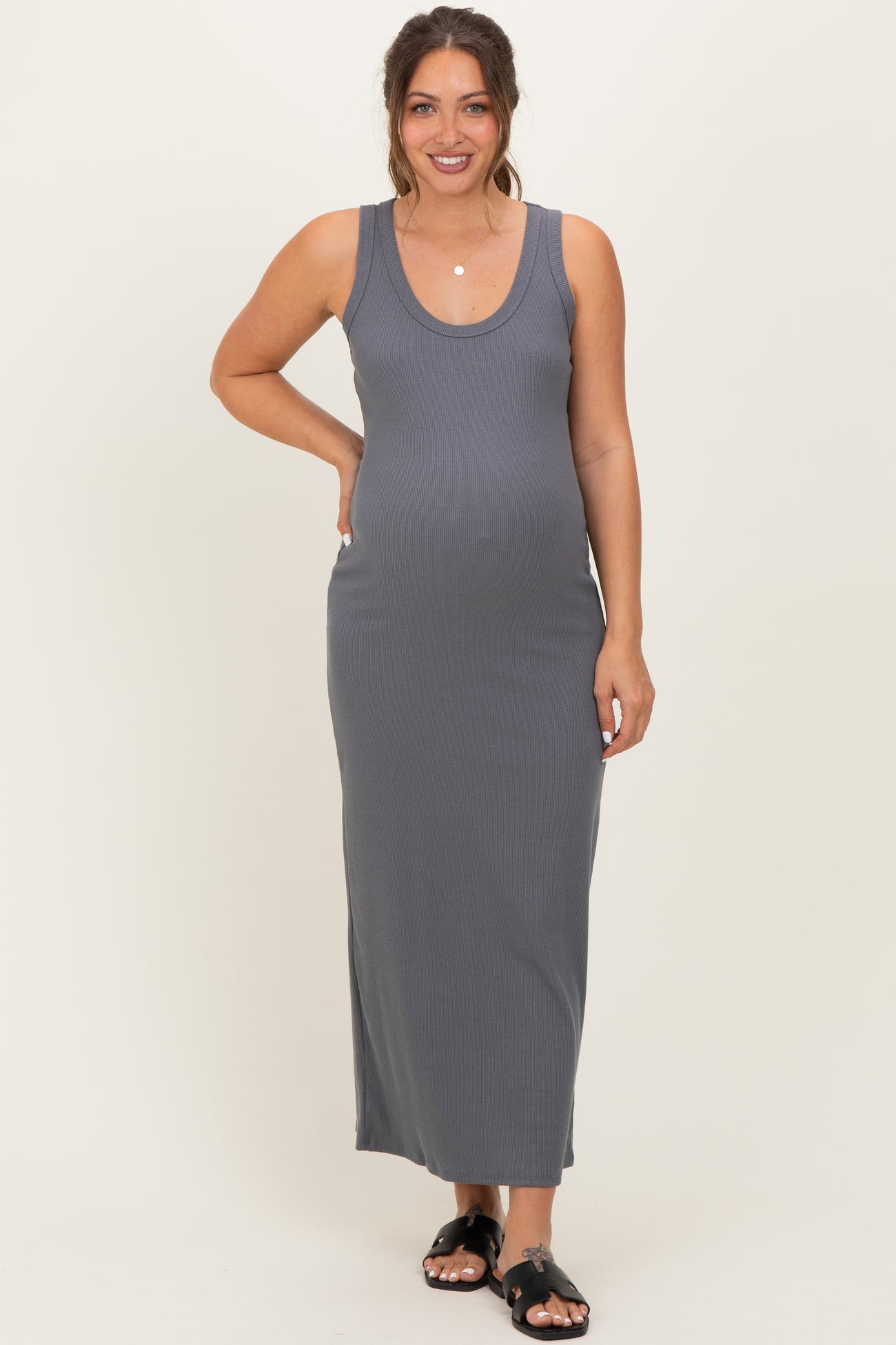 Charcoal Sleeveless Ribbed Maternity Maxi Dress