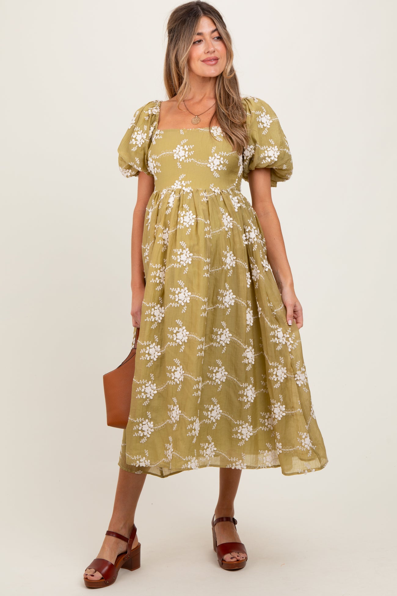 Elevate your maternity wardrobe with this textured midi dress, designed for comfort and style throughout your pregnancy. Featuring a flattering square neckline and romantic puff sleeves, this dress offers a breezy, feminine silhouette that beautifully accommodates your growing bump. The lightweight, breathable fabric is adorned with a delicate floral pattern, adding a touch of elegance to your everyday look. Its empire waistline enhances your figure while providing ample room for movement. Perfect for casual outings, baby showers, or special occasions, this dress combines fashion and function effortlessly. Pair with your favorite sandals or heels for an easy, chic maternity ensemble.