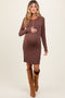 Burgundy Ribbed Knit Fitted Maternity Midi Sweater Dress