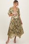 Beige Ribbed Henley Neckline Maternity Midi Sweater Dress