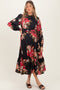 Black Ditzy Floral Long Sleeve Ruffle V-Neck Tiered Maternity Maxi Dress