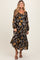 Black Floral V-Neck Long Sleeve Maternity Midi Dress