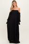 Black Ribbed Long Sleeve V-Neck Wrap Maternity Midi Dress