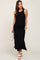 A solid sleeveless maternity midi dress with side slits in a ribbed fabric.