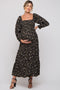 Black Ribbed Scallop Hem Long Sleeve Maternity Midi Dress
