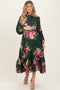 Black V-Neck Contrast Trim 3/4 Sleeve Maternity Midi Dress