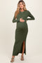 Black Velvet Long Sleeve Ruched Maternity Midi Dress