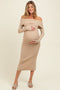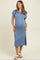 Blue Ribbed Short Sleeve Maternity Midi Dress