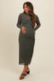 Brown Shimmer Mesh Long Sleeve Ruched Maternity Midi Dress