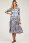 A floral maternity maxi dress with a squared neckline, a smocked top, long sleeves, side pockets, and a gathered bottom tier.