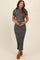 Charcoal Striped Mock Neck Fitted Maternity Midi Dress