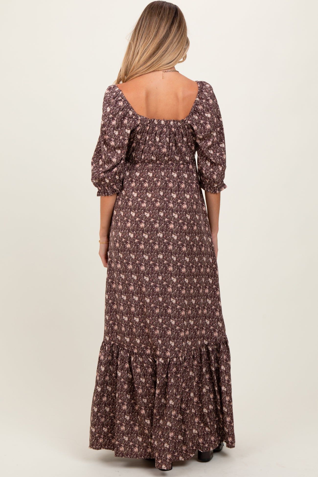 Chestnut Floral Sweetheart Neckline Maternity Maxi Dress