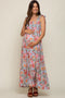 A floral print maternity maxi dress featuring a square neckline, a smocked elastic top, long puff sleeves and side pockets.