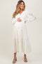 Cream Flutter Sleeve Button Down Maternity Maxi Dress