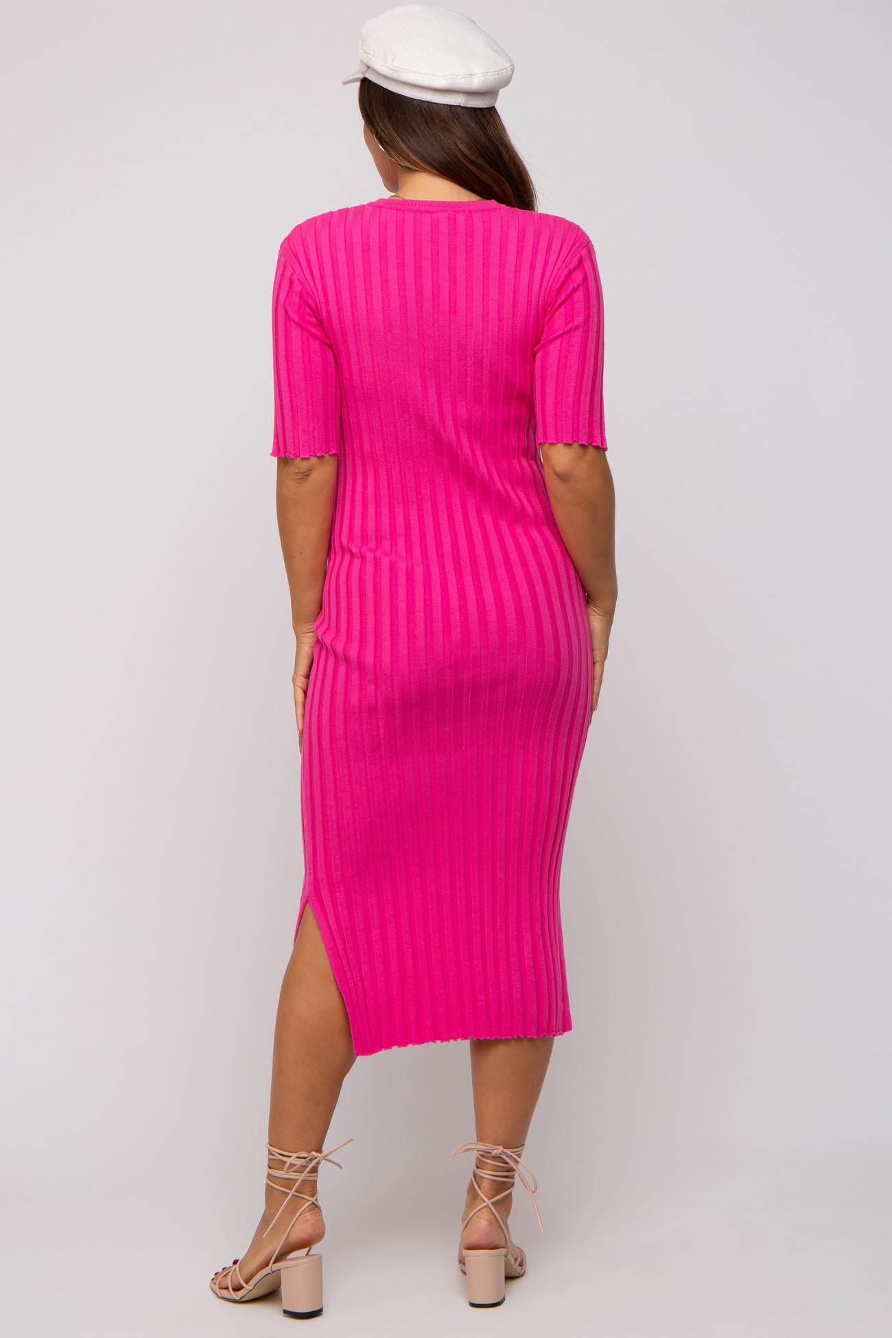 Fuchsia Ribbed Knit Maternity Midi Dress