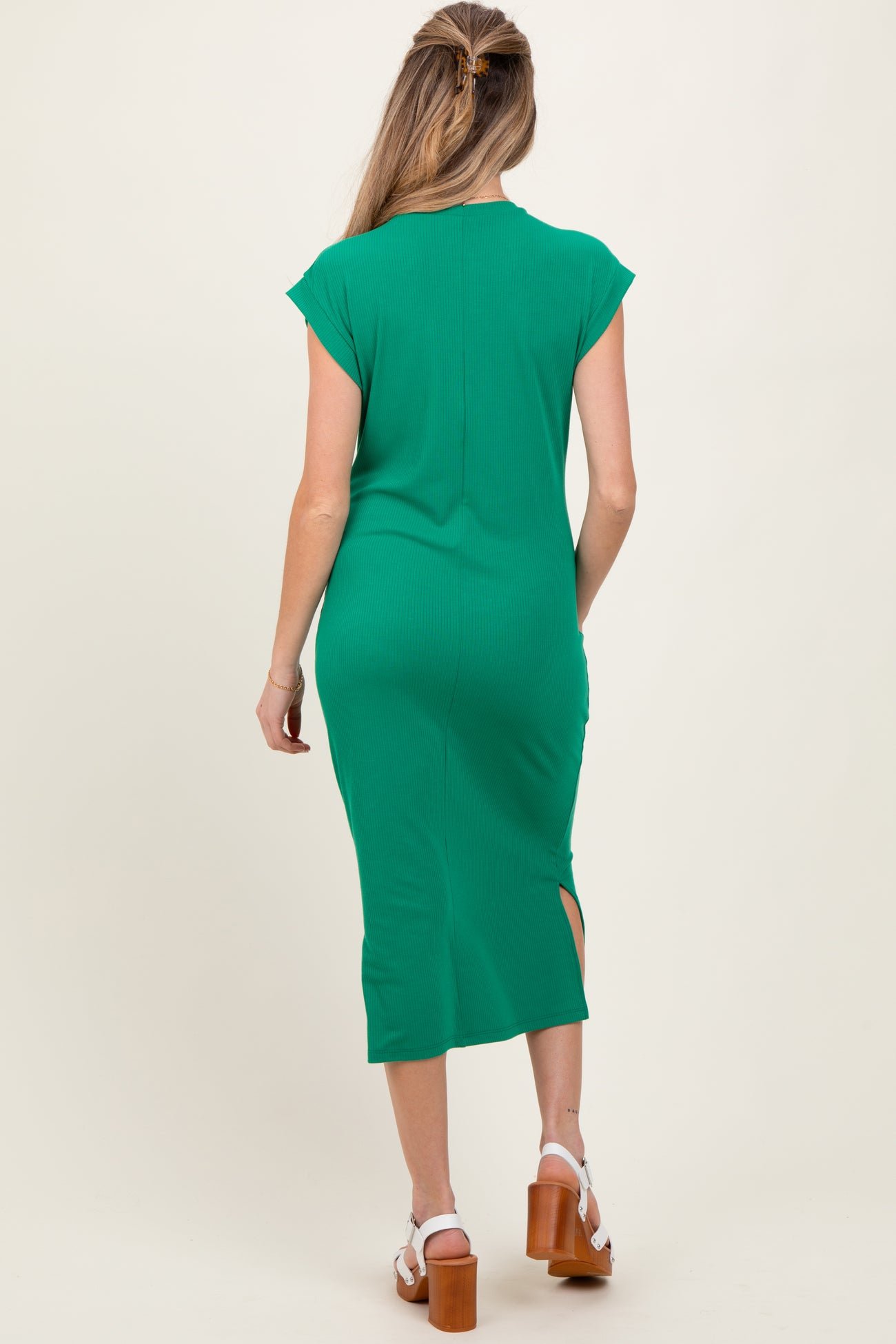 Green Basic Dolman Sleeve Maternity Midi Dress