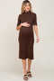 A striped ribbed sleeveless maternity dress featuring self-tie shoulder straps, a v-neckline and a side slit.
