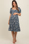 Light Blue Ruffle One-Shoulder Maternity Midi Dress