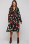 A ribbed fitted maternity midi dress featuring a mock neckline, long sleeves and a side slit.