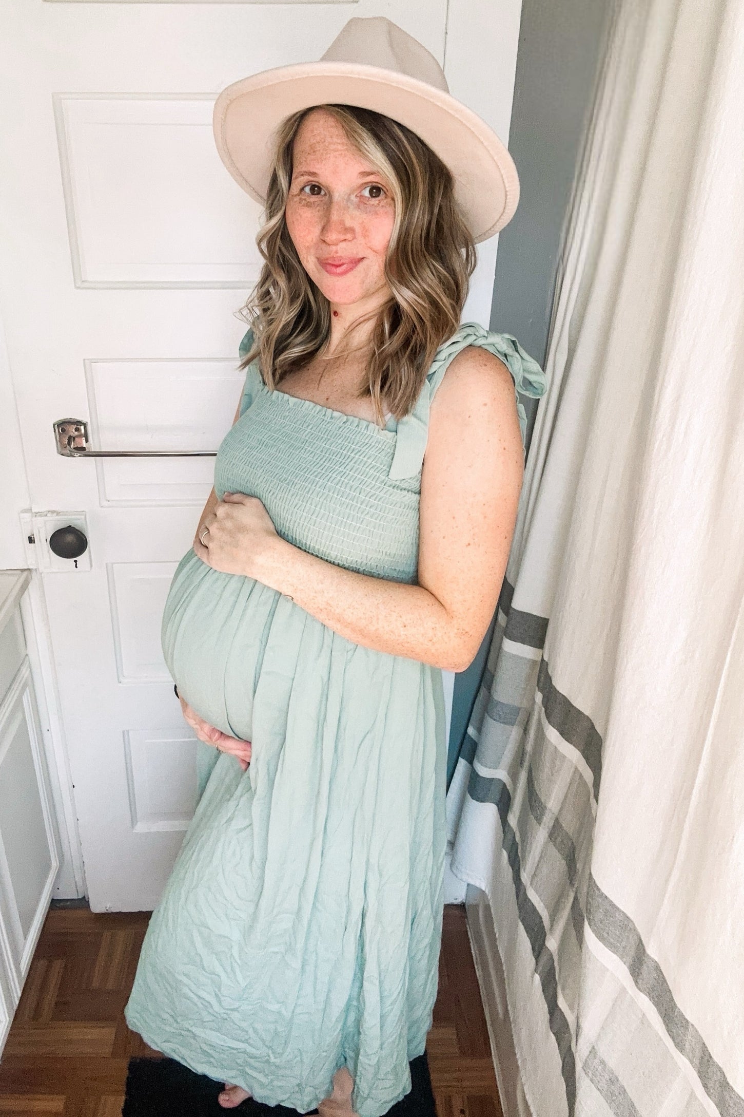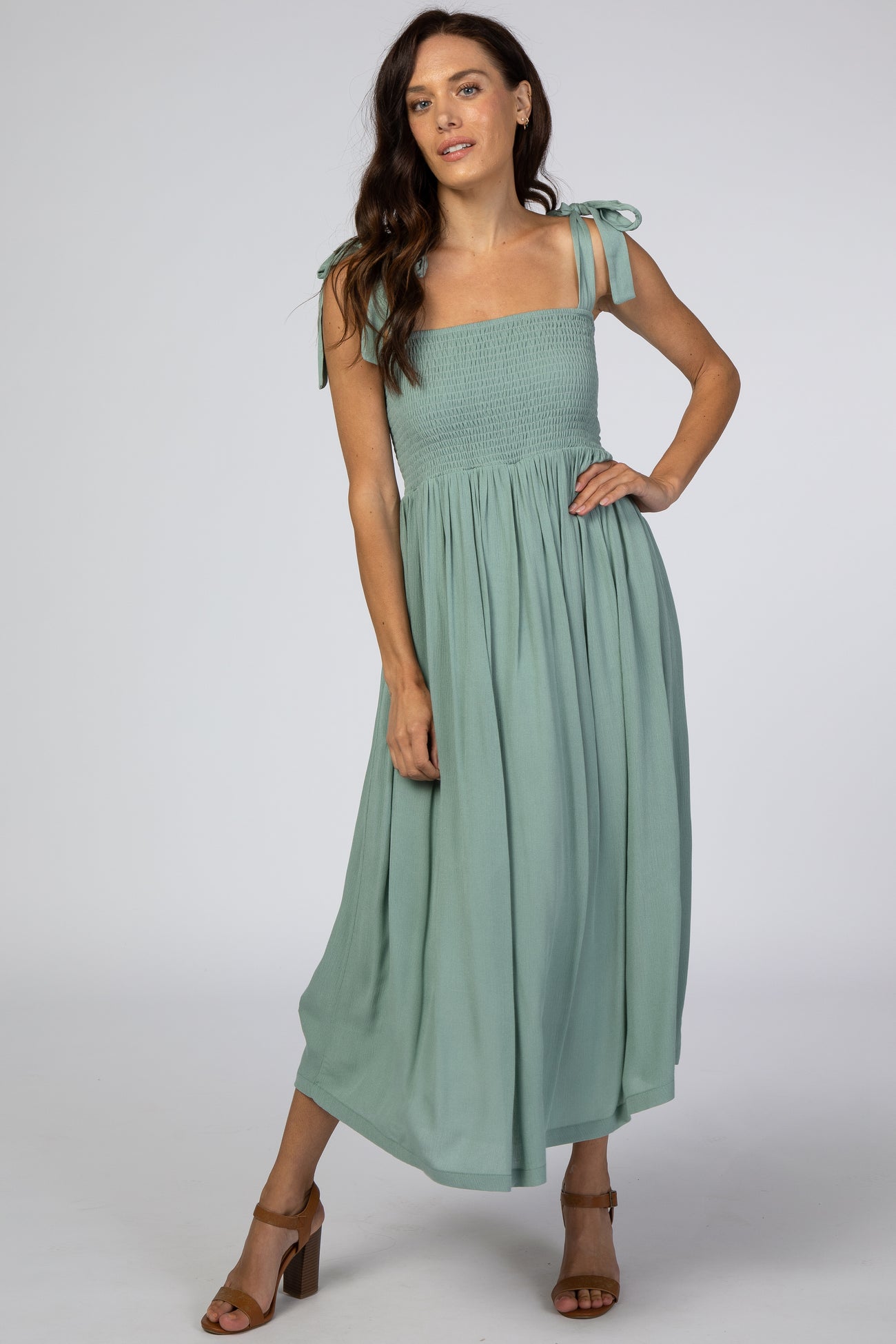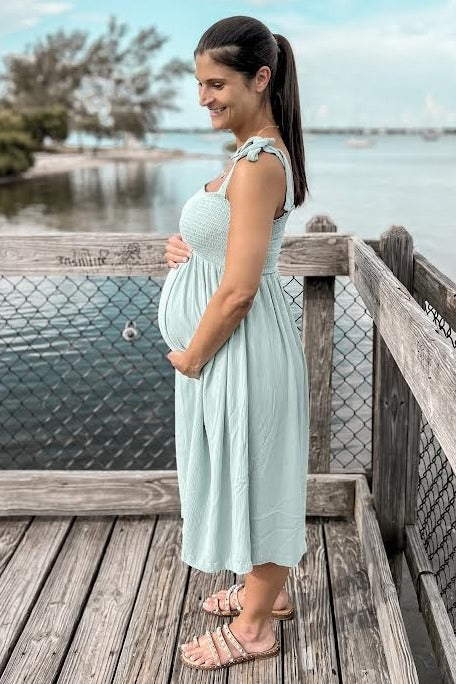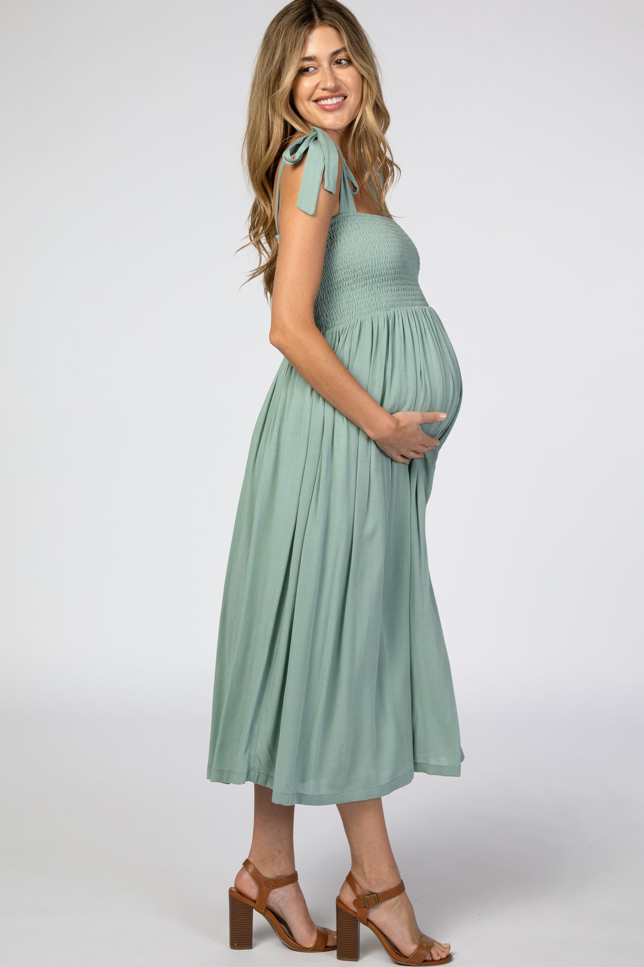 Mint Green Smocked Tie Strap Maternity Midi Dress