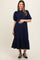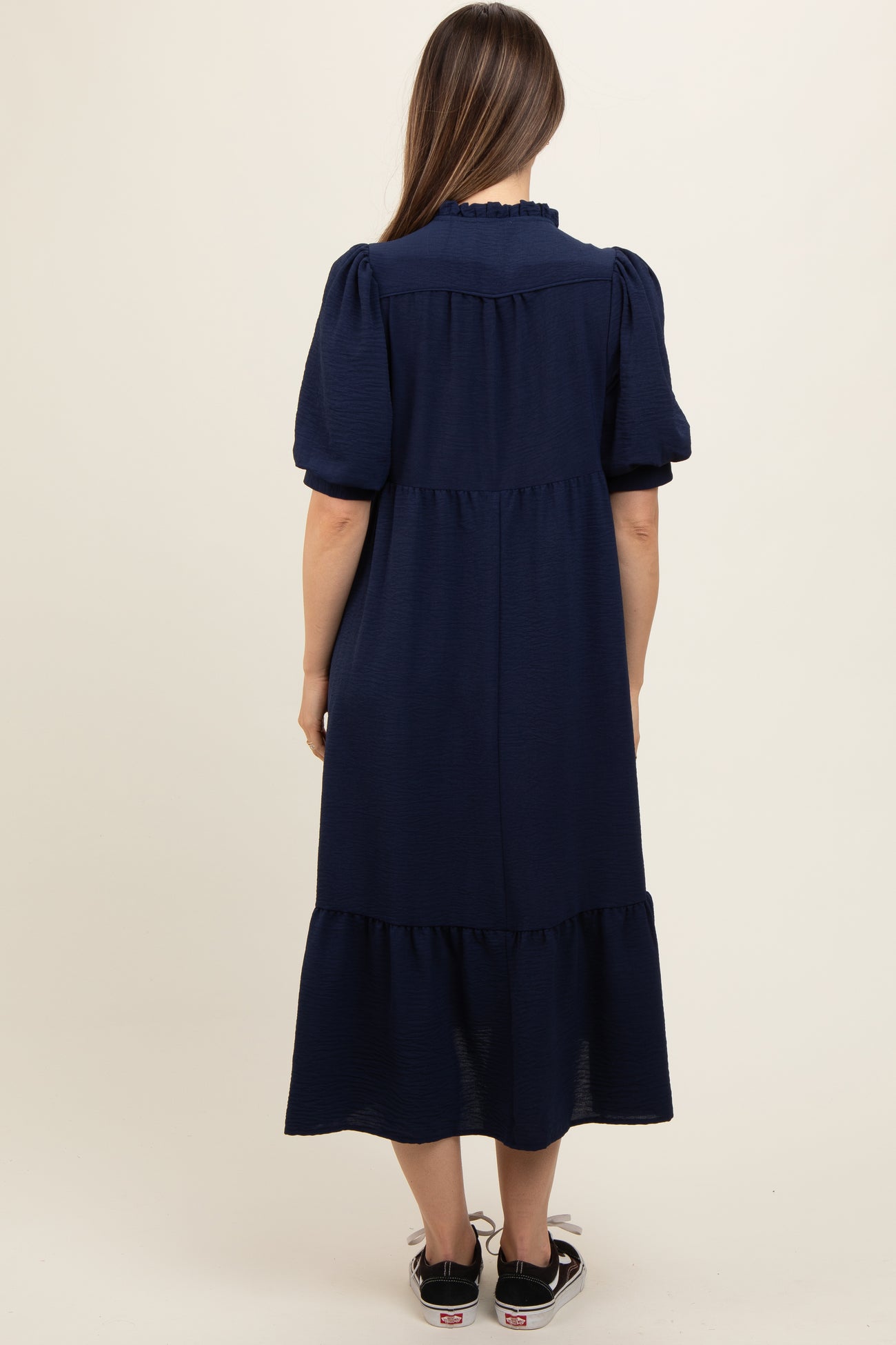 Navy Balloon Sleeve Split Neck Maternity Midi Dress