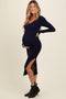 Navy Blue Smocked Eyelet Lace Hem Maternity Maxi Dress