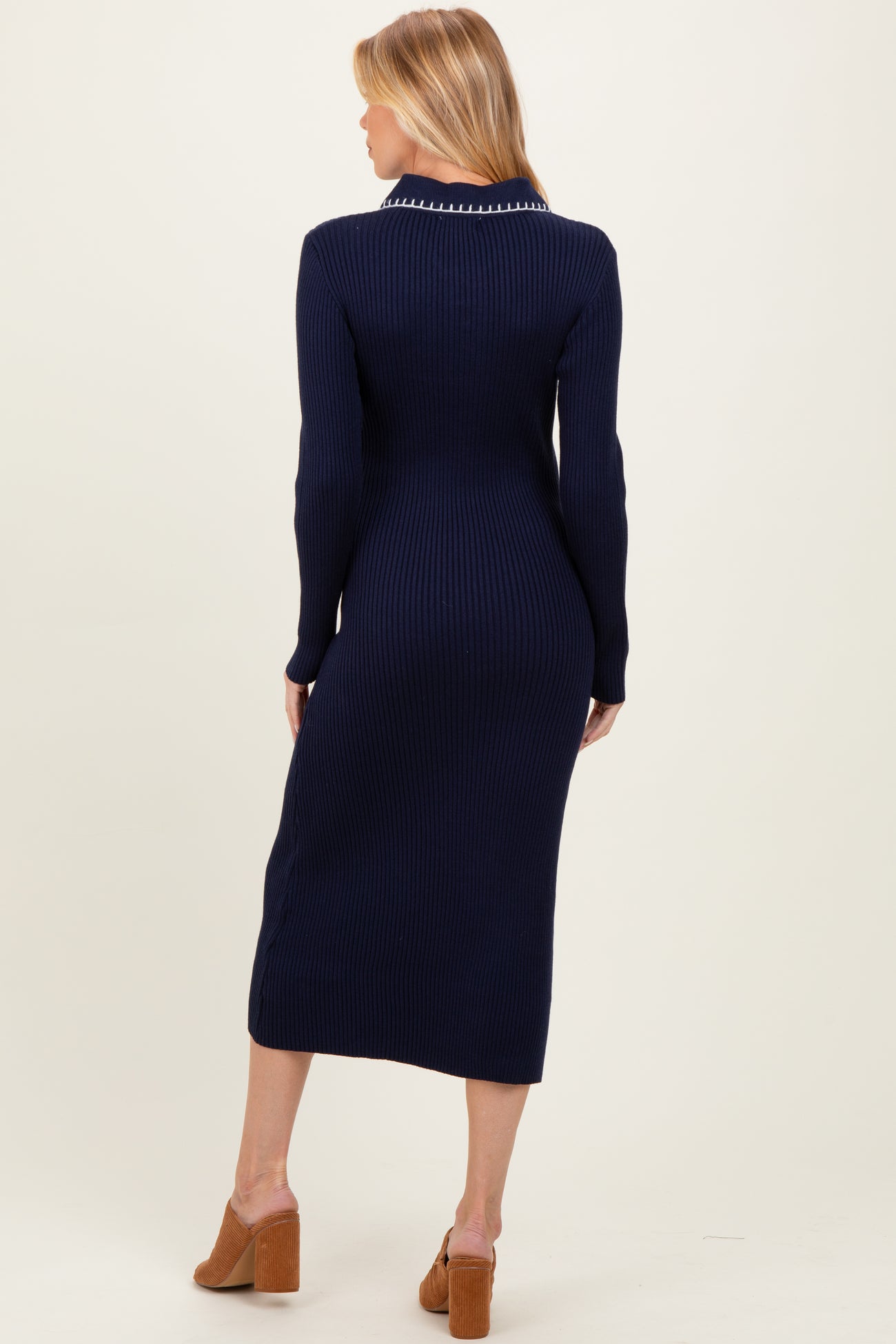 Navy Contrast Stitch Maternity Midi Sweater Dress