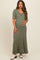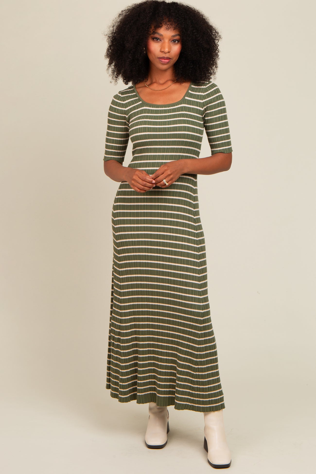 Olive Striped Ribbed Short Sleeve Maternity Maxi Dress