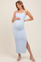 Glow in this Yellow Floral Smocked Off Shoulder Maternity Maxi Dress, designed with comfort and style in mind. The soft, breathable fabric features a charming delicate floral print, perfect for any season. The smocked bodice gently hugs your baby bump while the off-shoulder neckline and long puff sleeves add a romantic, boho vibe. Its flowing maxi length with a ruffled hem provides easy movement and an elegant silhouette. Ideal for maternity photoshoots, casual outings, or special events. Embrace your pregnancy journey with effortless grace and feminine charm in this must-have maternity dress!