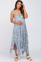 Blue Floral Chiffon Smocked Tiered Square Neck Maternity Midi Dress