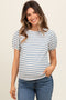 Beige V-Neck Pocket Short Sleeve Maternity Shirt