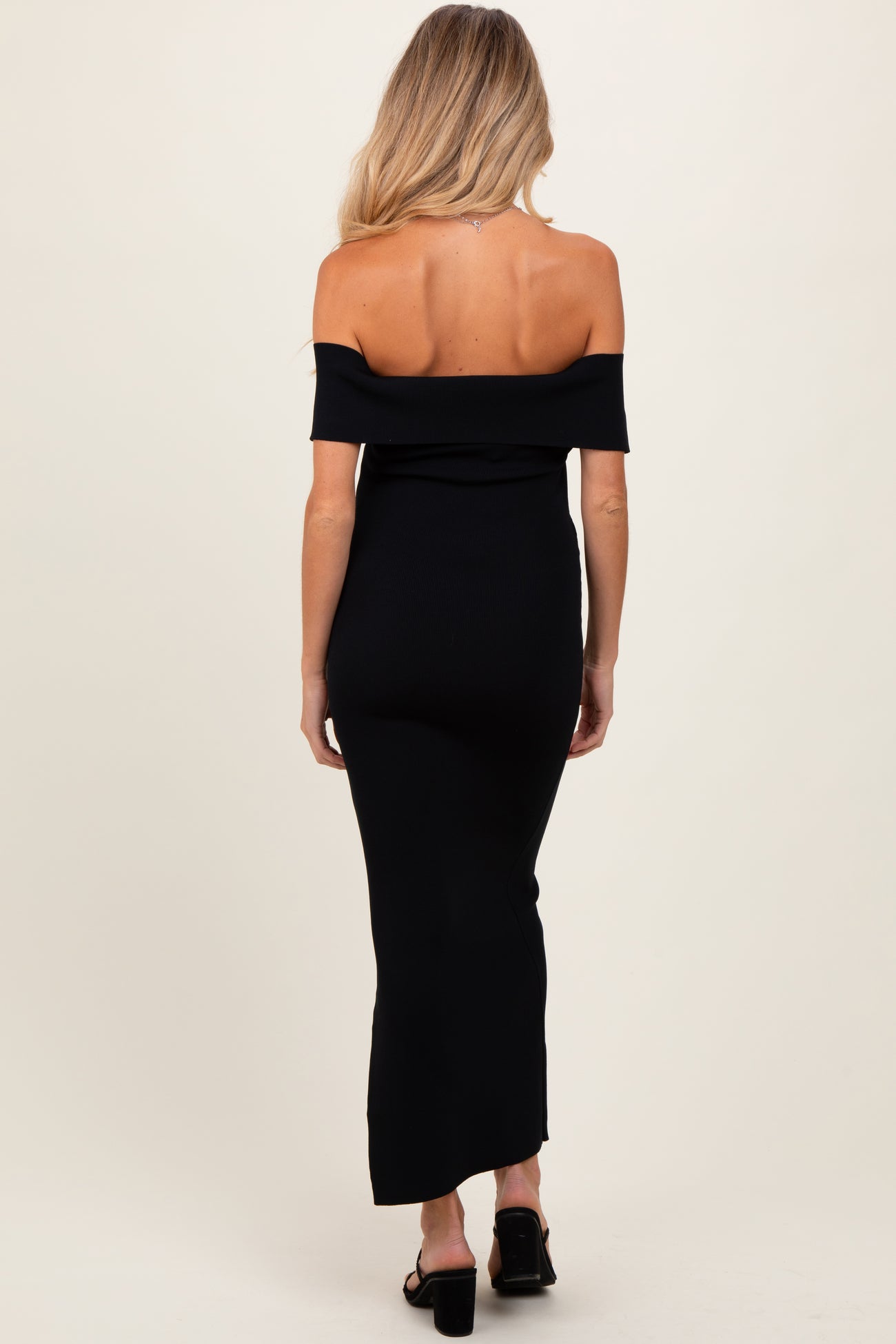 Black Bow Detail Off Shoulder Side Slit Maternity Midi Dress