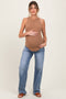 Brown Floral Smocked Handkerchief Hem Maternity Maxi Dress
