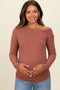 Burgundy Ribbed Long Sleeve Side Slit Maternity Maxi Dress