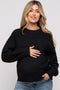 A solid ribbed maternity dress featuring long sleeves and a self-tie wrap v-neckline.