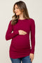 A solid brushed knit maternity long sleeve top with a scoop neckline and ruched sides.
