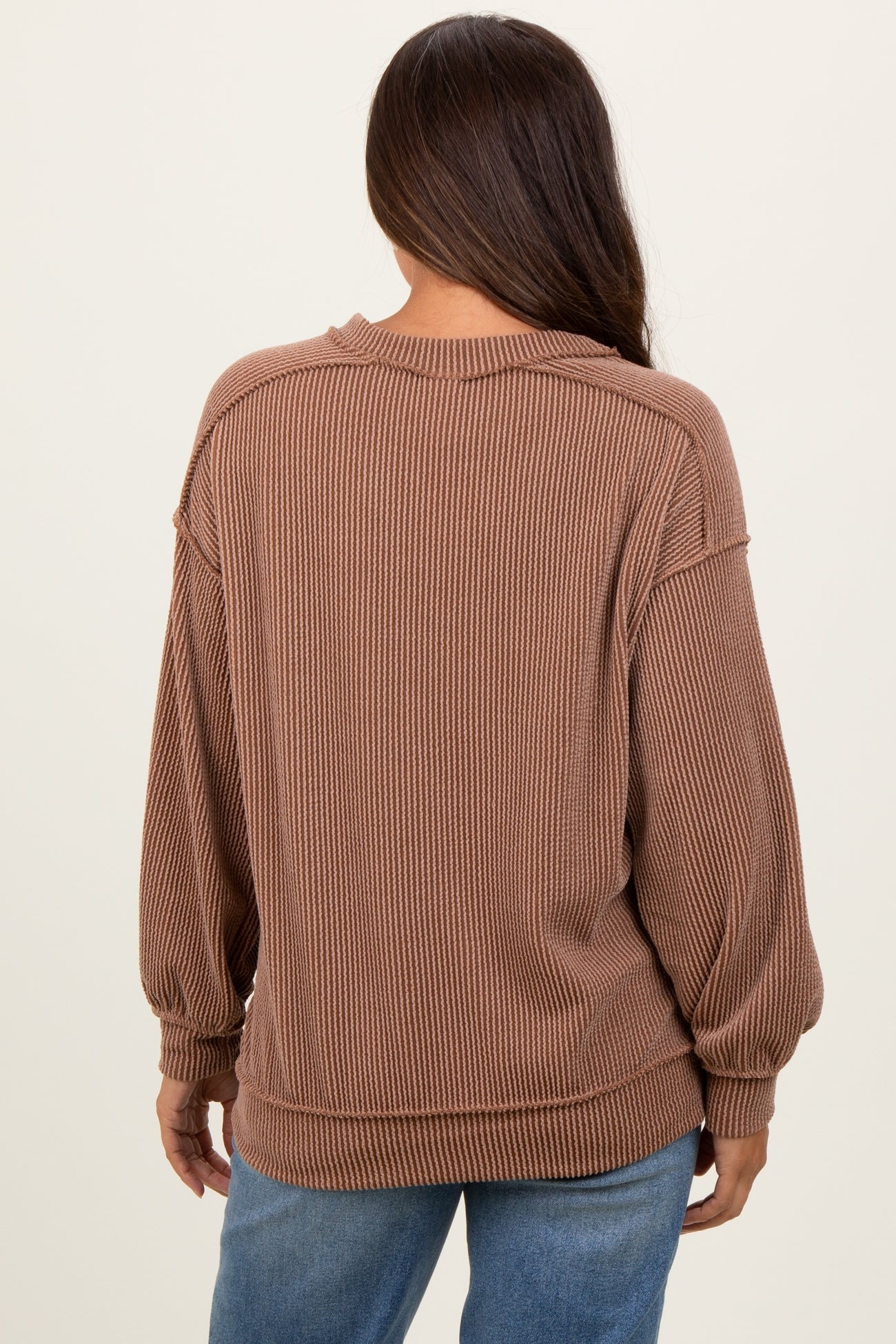 Mocha Ribbed Knit Front Pocket Maternity Pullover