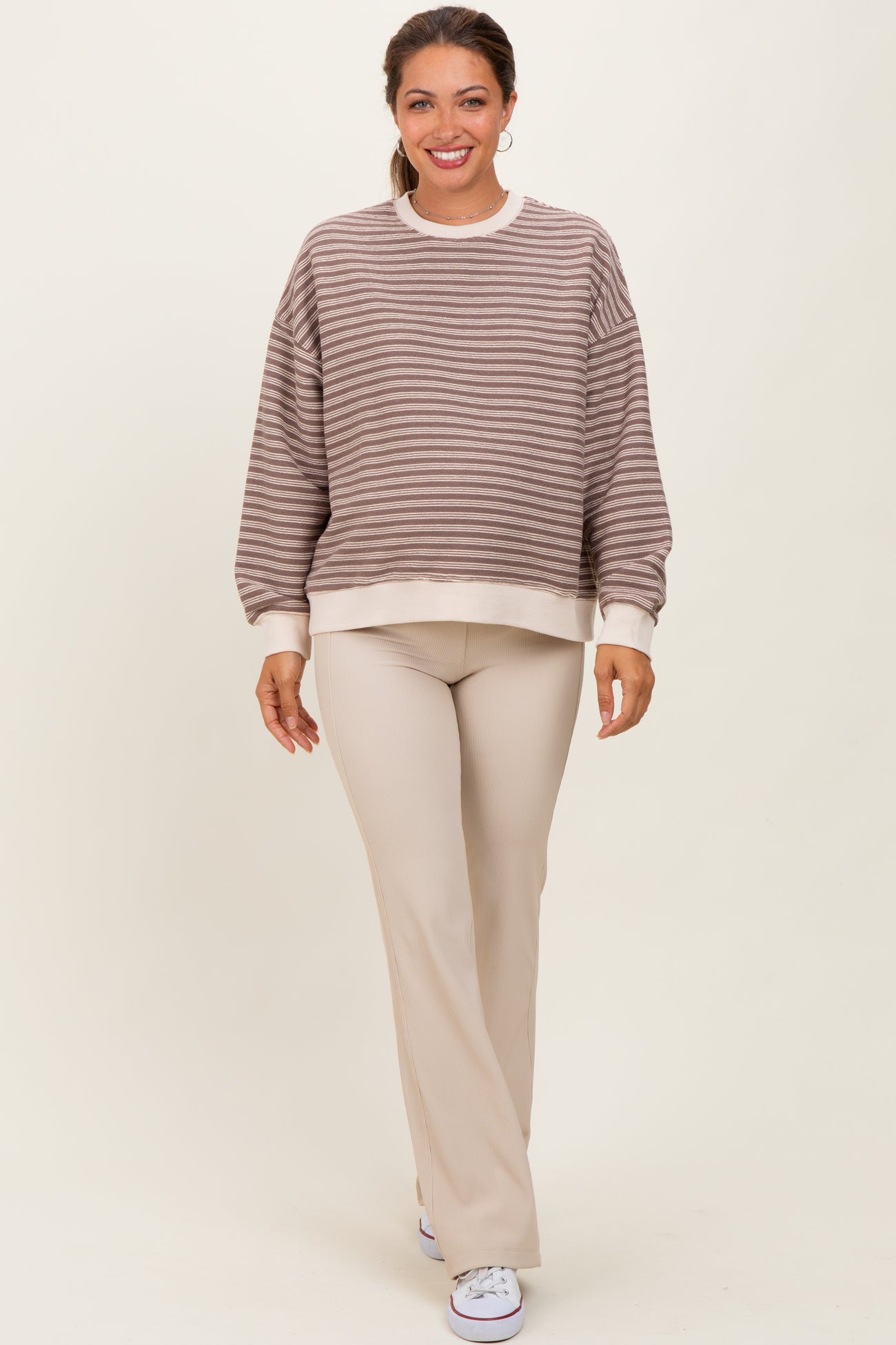 Mocha Striped Knit Relaxed Fit Maternity Pullover