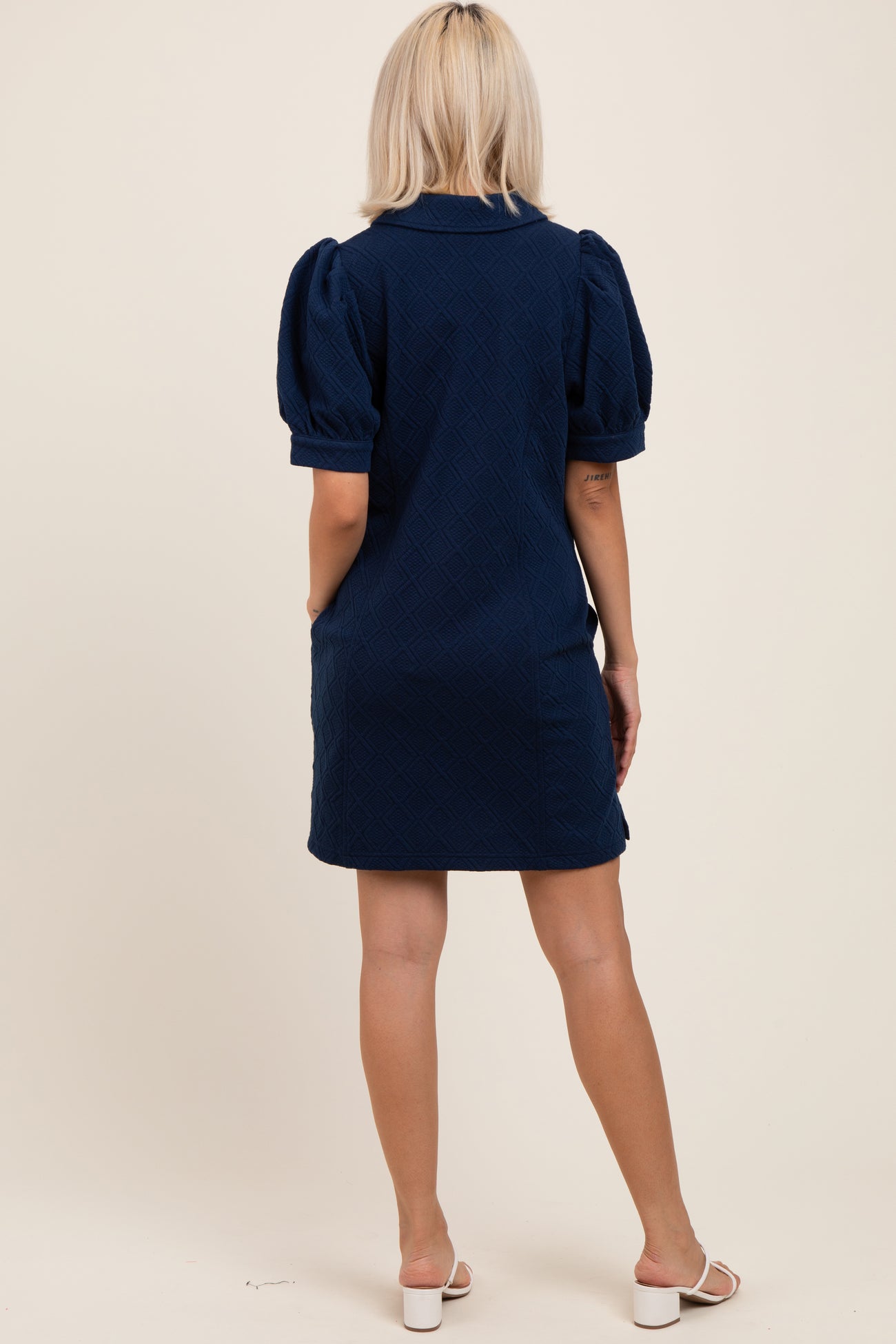 Navy Jacquard 1/4 Zip Maternity Mini Shirt Dress