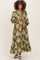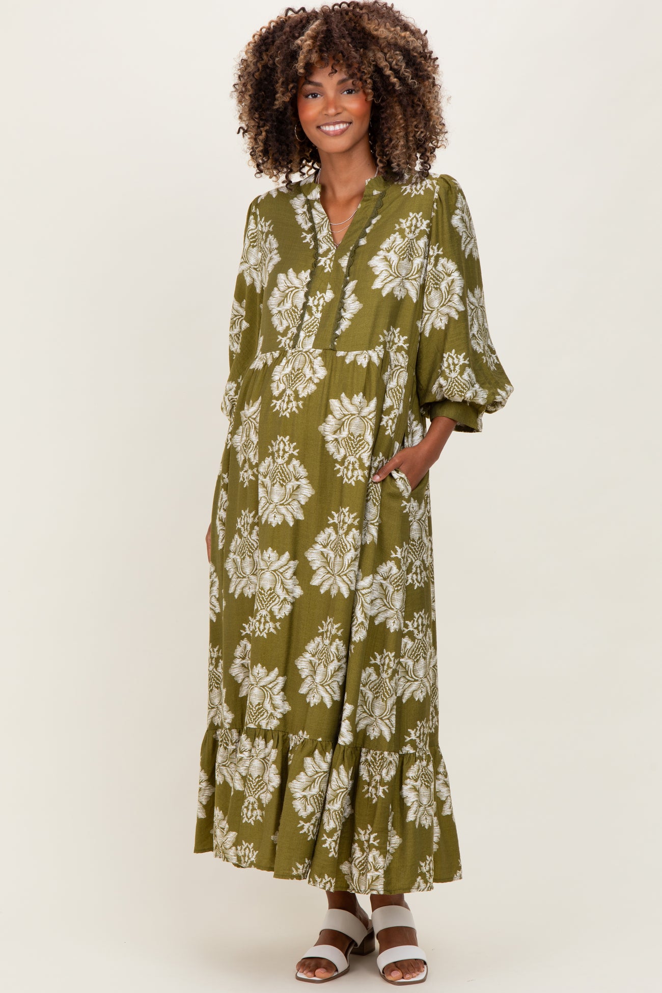 Olive Floral V-Neck 3/4 Sleeve Maternity Midi Dress