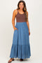 Olive Smocked Waist Button Accent Maternity Maxi Skirt