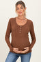 Plum Brushed Long Sleeve Ribbed V-Neck Maternity Top