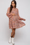 Taupe Floral Smocked Tiered Maternity Midi Dress