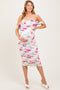 Cream Print Pleated Maternity Midi Dress