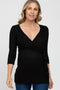 A brushed knit maternity top featuring 3/4 sleeves and a self-tie wrap neckline.