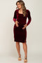 Black Velvet Long Sleeve Side Slit Maternity Dress
