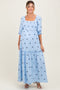 Beige Textured Rib Tiered Long Sleeve Maternity Dress
