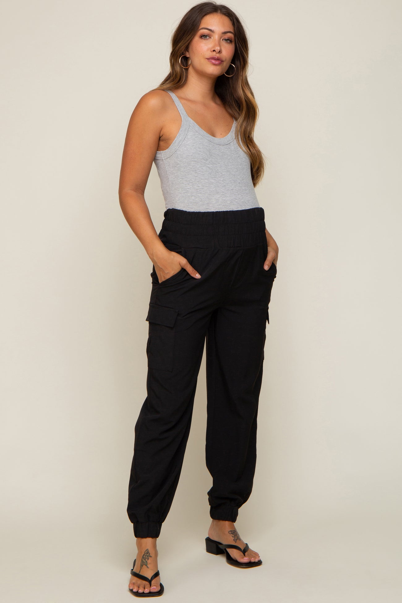 Black Cargo Pocket Maternity Joggers
